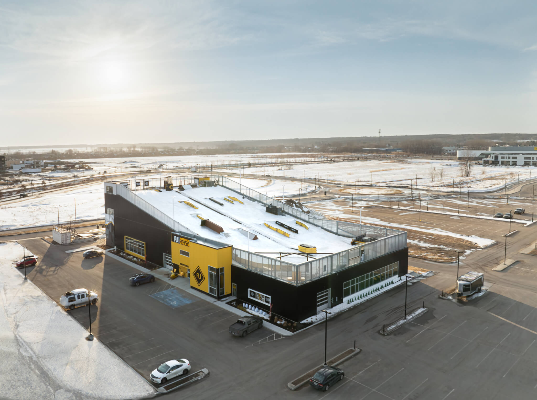 Adrénaline Urbaine est un futur centre sportif unique au Canada, spécialisé dans les sports d’action. Il s’agit d’un bâtiment neuf de 25 000 pi2, situé dans le District 55 à Trois-Rivières. La structure, d’une architecture innovatrice, comprend une toiture inclinée qui accueillera un snowpark quatre saisons grâce à une surface synthétique qui sera fixée au toit. Par ailleurs, une remontée mécanique sera installée pour permettre aux planchistes et skieurs de faire une moyenne d’une descente à la minute.
